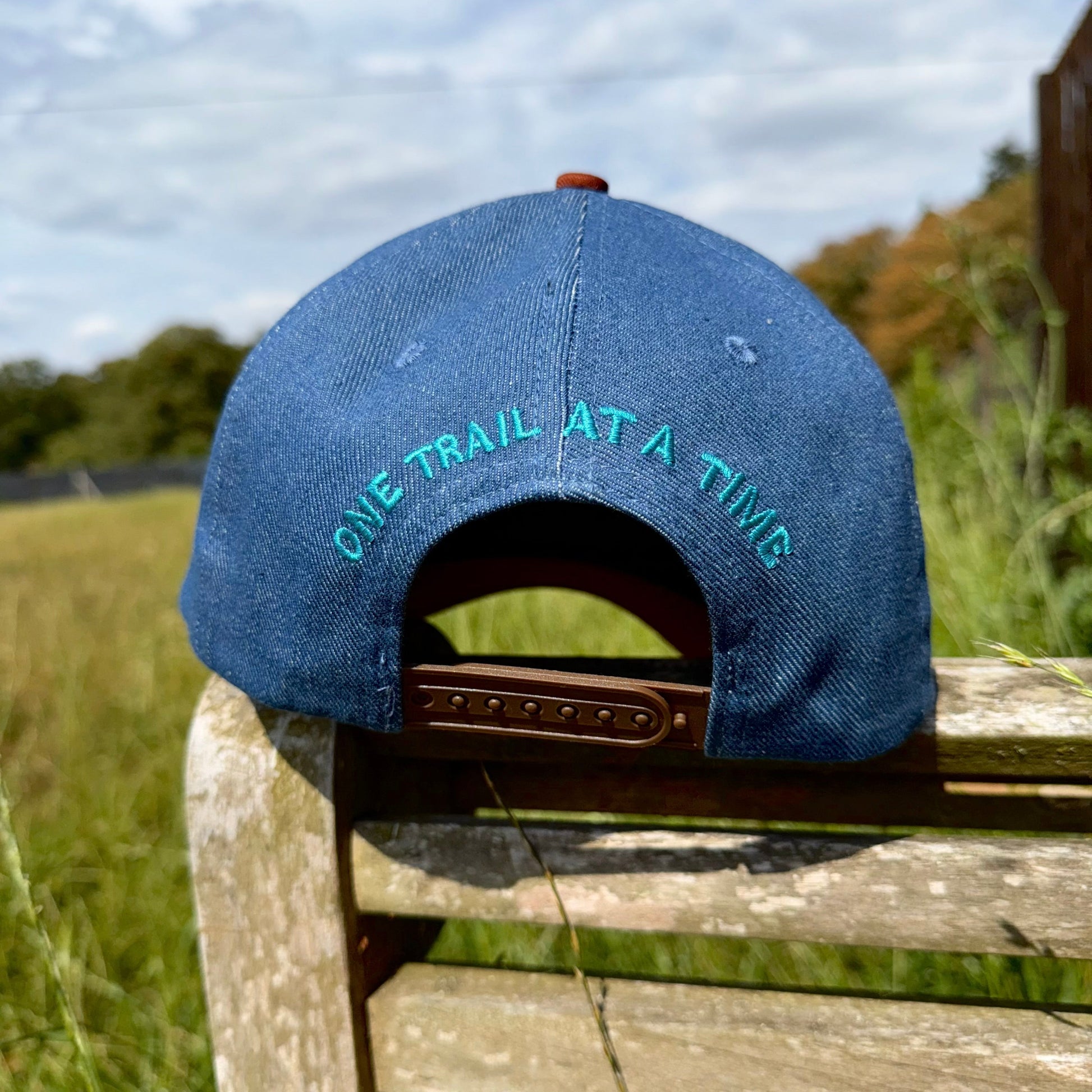 This rugged yet stylish trucker cap features a classic denim crown paired with a contrasting brown brim for a timeless Western look. The highlight is the turquoise embroidery, showcasing intricate details that add a bold pop of color and personality. on the side is a beautifully embroidered turquoise cowboy boot, giving the cap an authentic cowboy vibe with a modern twist. Designed with an adjustable snap closure, it ensures comfort and a perfect fit whether you’re on the ranch, at a rodeo, or just adding a touch of Western flair to your everyday outfit.